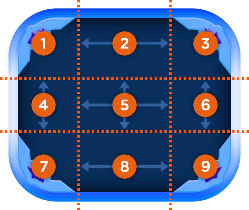 • Bagian tengah (5) → boleh di-stretch ke semua arah.