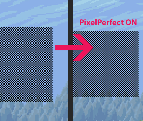 2. Tanpa pixel-perfect, hasilnya bisa pecah, blur, atau malah “loncat-loncat” tiap gerak kamera.
