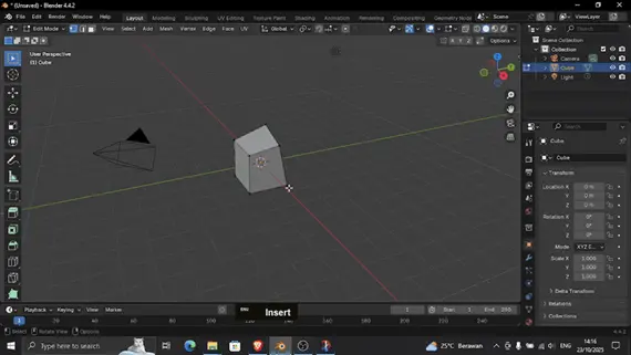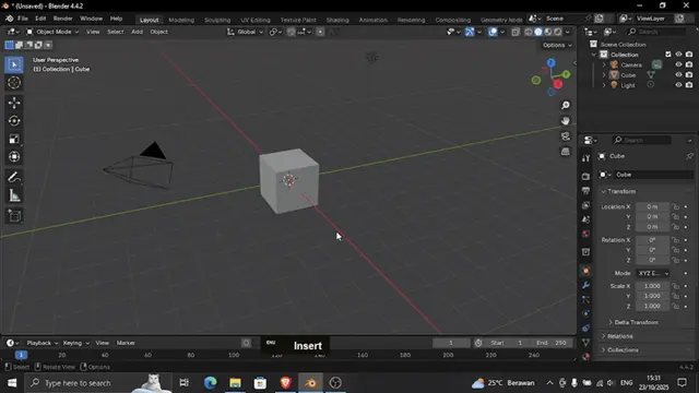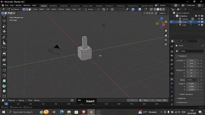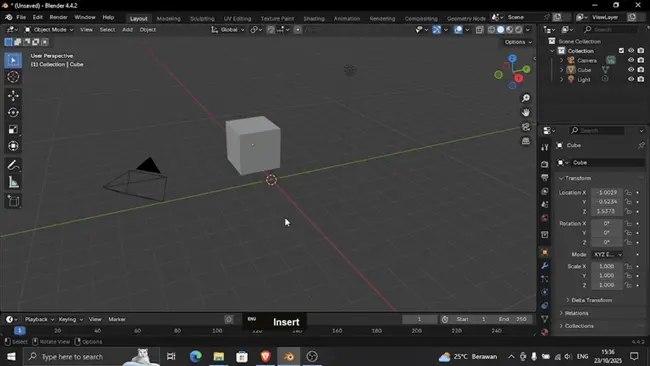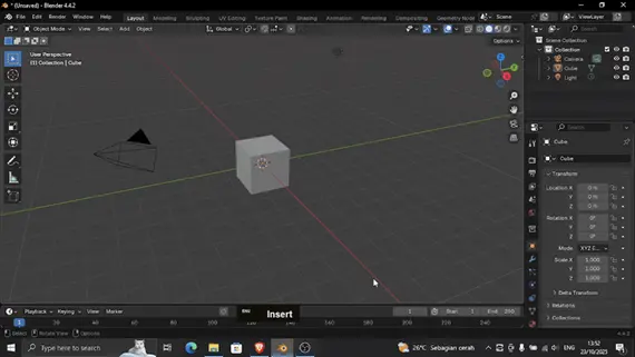 Transform location dimana kita mengubah lokasi objek dalam sumbu X, Y, dan Z. Transform location objek bisa dilakukan dengan menekan shortcut key βGβ dan key βXβ, βYβ, βZβ untuk mengikuti sumbu.