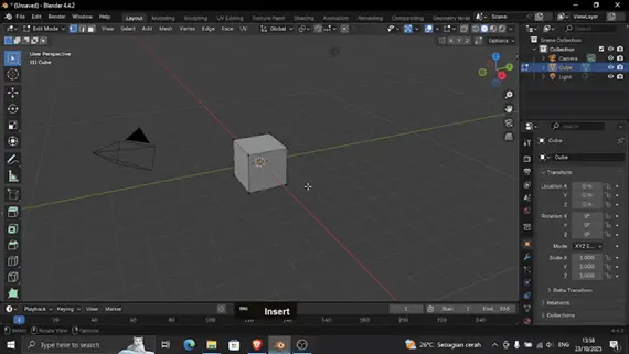 Selama ini kita baru membahas objek dalam βObject Modeβ, karenanya transform atau manipulasi objek hanya sebatas pada objek secara keseluruhan. Lalu bagaimana kita mengubah objek mesh menjadi lebih bagus? Jawabannya dengan menggunakan βEdit Modeβ.