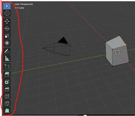 Kalau kita perhatikan, tampilan toolbar di bagian kiri viewport berubah karena tambahan fitur seperti Inset, Extrude, Bevel, Loop cut, dan Knife.